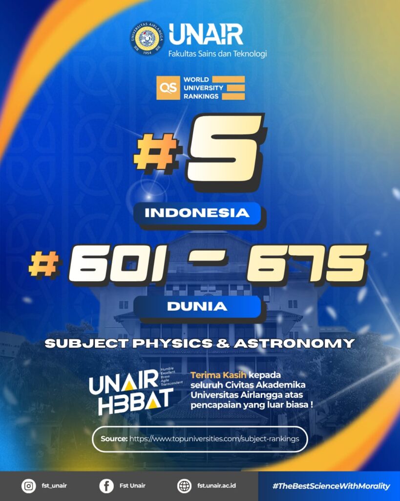 SURABAYA – Fakultas Sains dan Teknologi (FST) Universitas Airlangga kembali menorehkan tinta emas di kancah internasional. Berdasarkan rilis terbaru QS World University Rankings (WUR) by Subject 2026, sejumlah bidang ilmu […]
